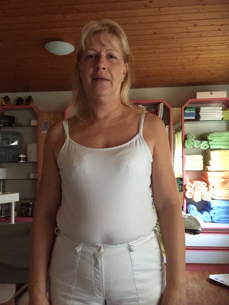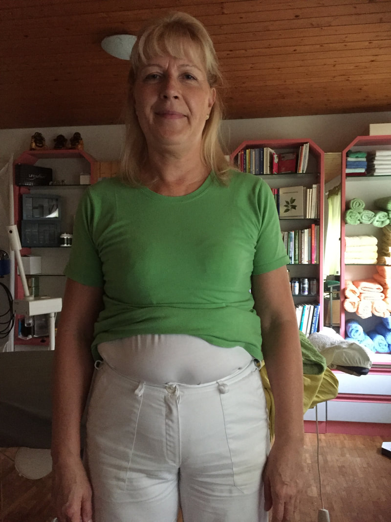 The 3 pictures in the gallery above show me before the treatment. The 3 pictures below show me after 30 treatments with 15 infrared treatments, muscle building and lymph. I’ve been dancing salsa again since summer 2018. Salsa involves the whole body. My love handles just melted away.